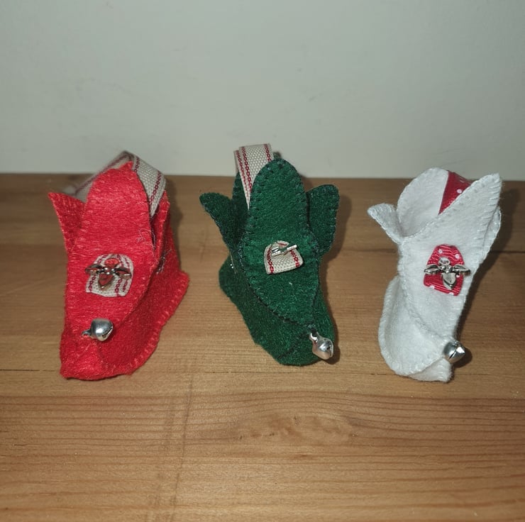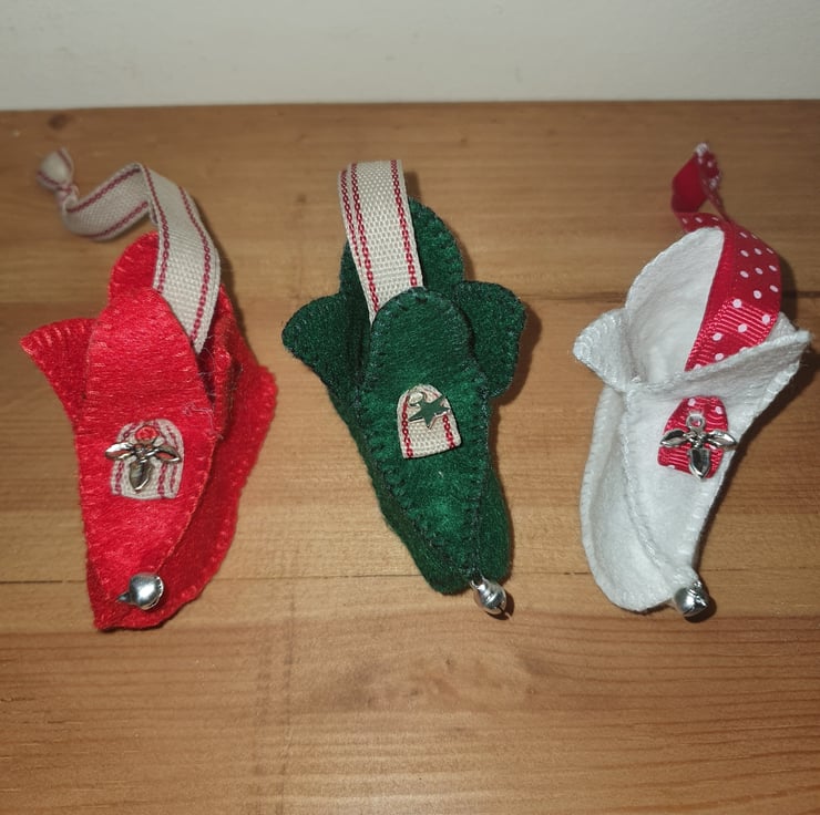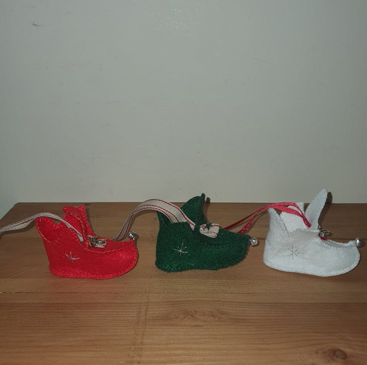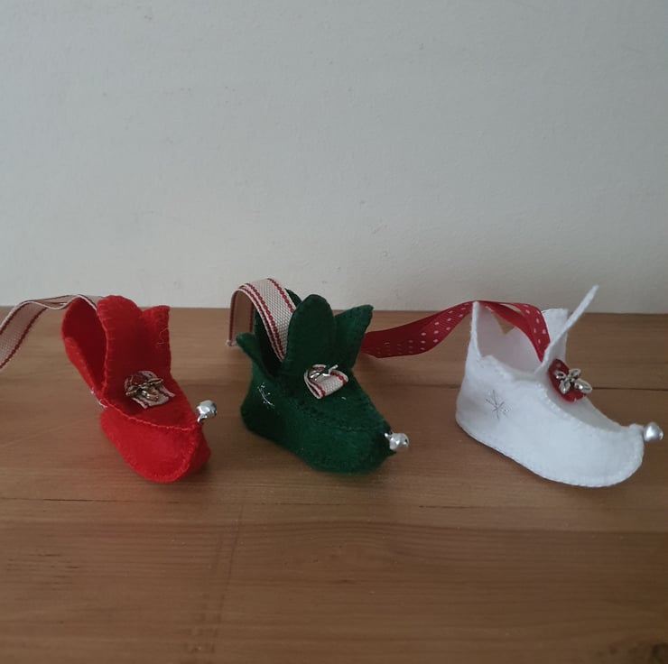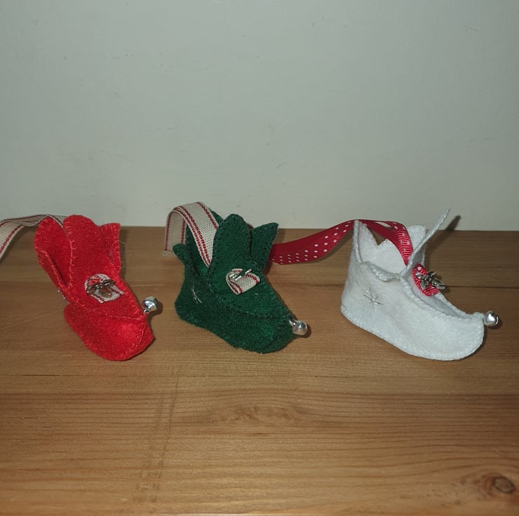 These adorable little Christmas elf boots are sewn by hand with love and care.