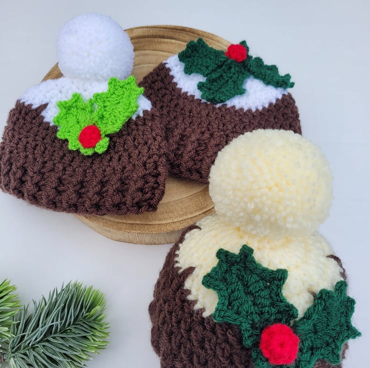 Effective Christmas Pudding hats. How lovely for a little one for the festive season.