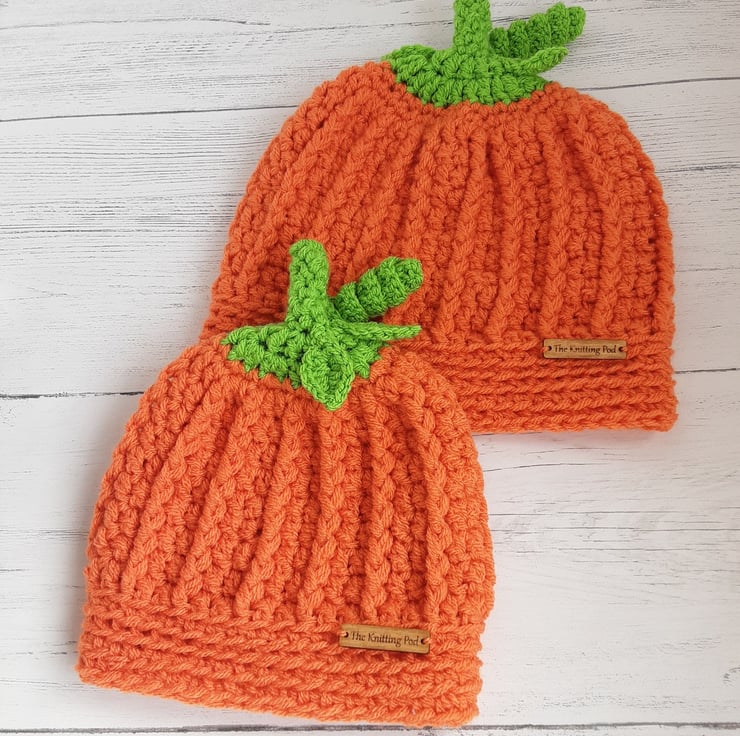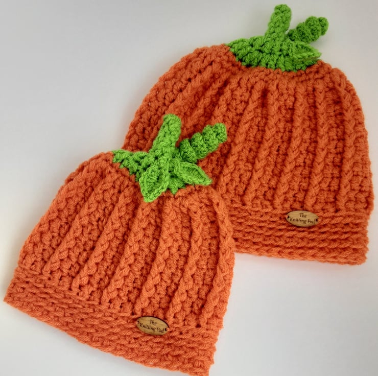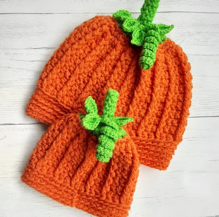 Suitable for the Halloween season, photo shoots, fancy dress, general winter wear. Hats are soft and stretchy. Each hat features built in stalk with stitched on leaves and curly strand.