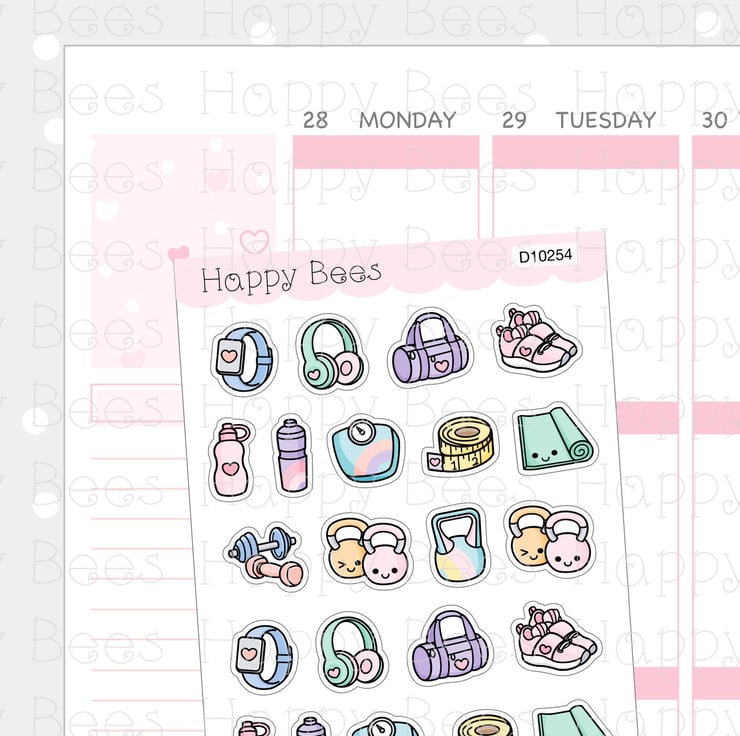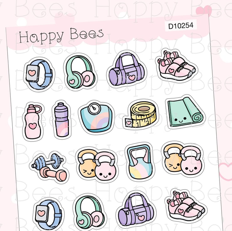 Fitness Doodles - Cute Gym Health Sport Exercise Planner Stickers D10254