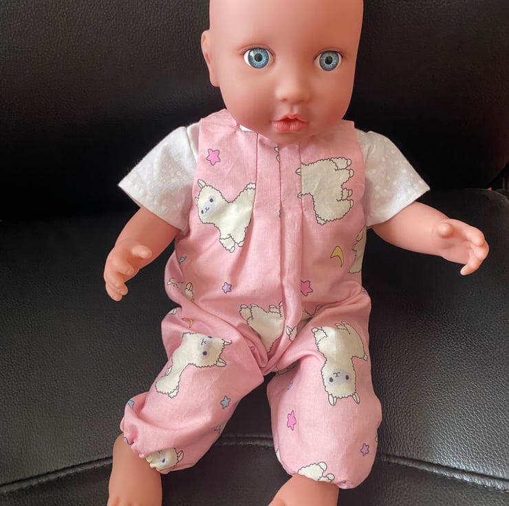 I have been asked to make baby doll clothes in a smaller size. For a long time I did not have the right size doll, I used to model on a teddy. Now I have a model doll and some new baby doll clothes.