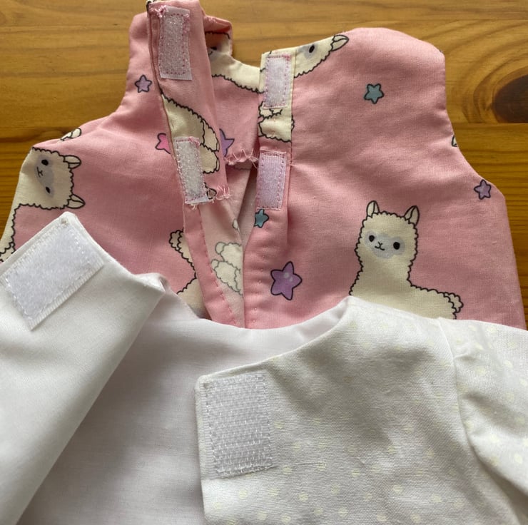 The fastenings at the back are Velcro. This outfit is suitable for all age children.