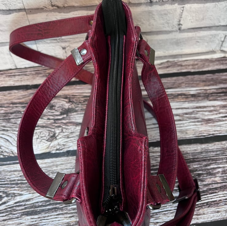 It has top handles that fit comfortably in the crook of your elbow or use the adjustable crossbody strap to be handsfree.