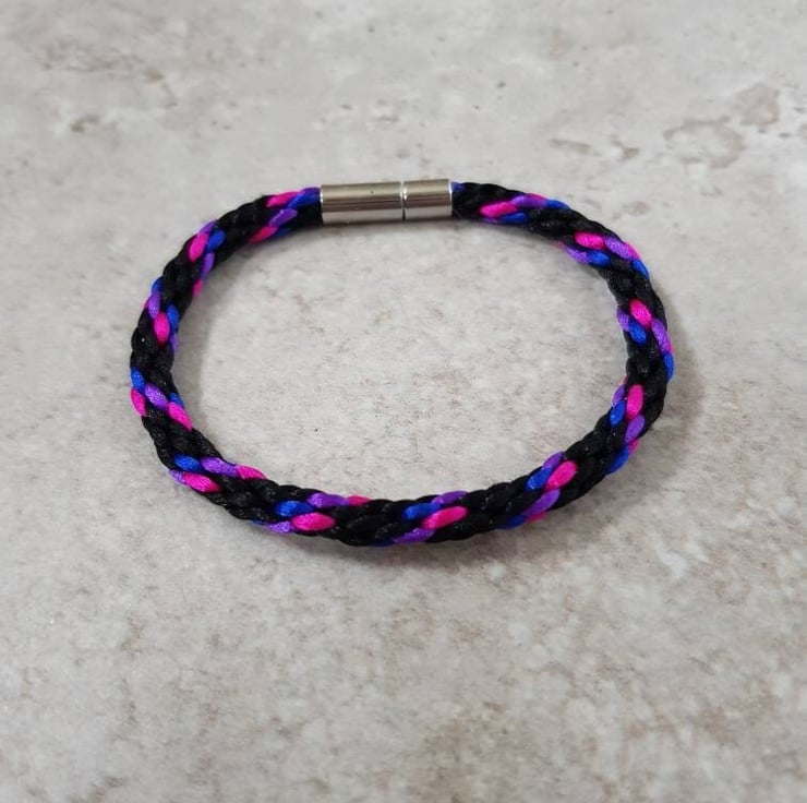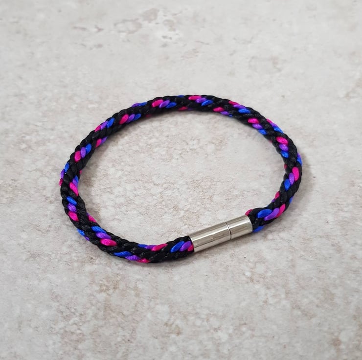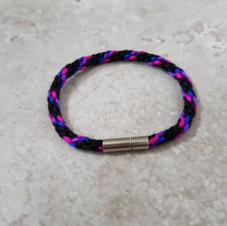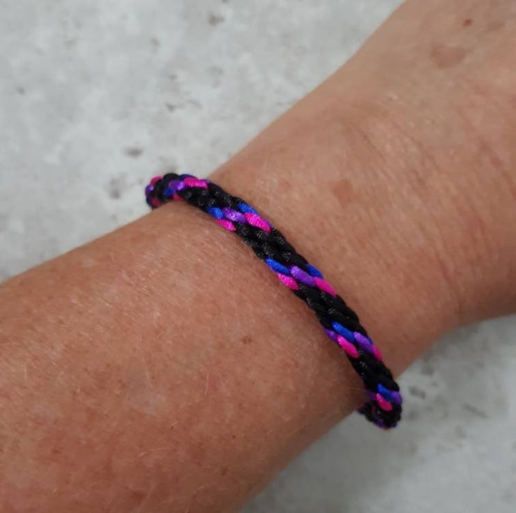 Choose ONE bi pride flag bracelet with black or purple background or why not have both!