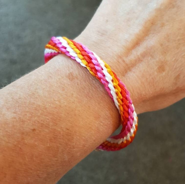 This lesbian flag bracelet would make a great girlfriend or coming out gift, fab for festivals, but perfect anytime! Wear it with Pride!