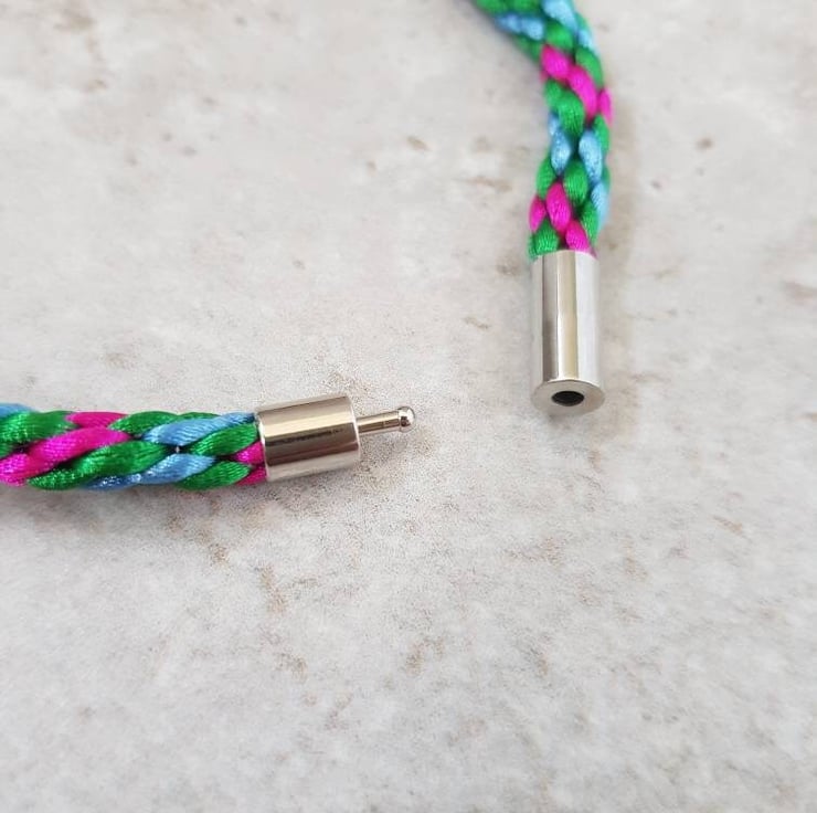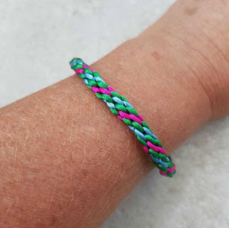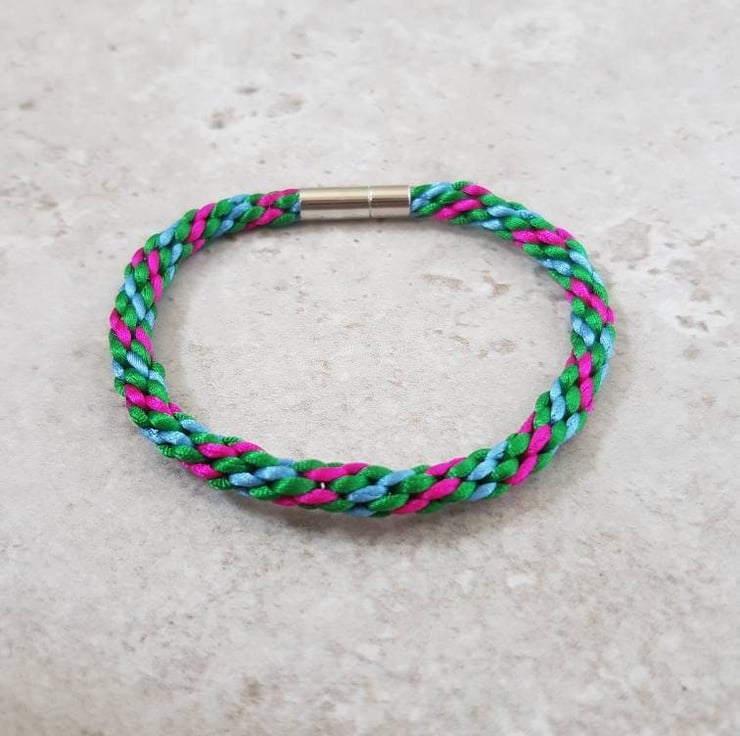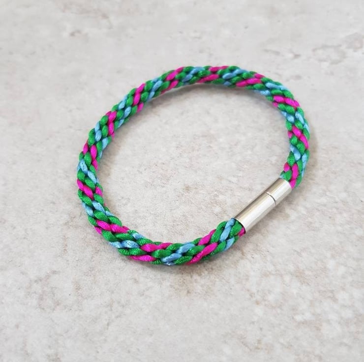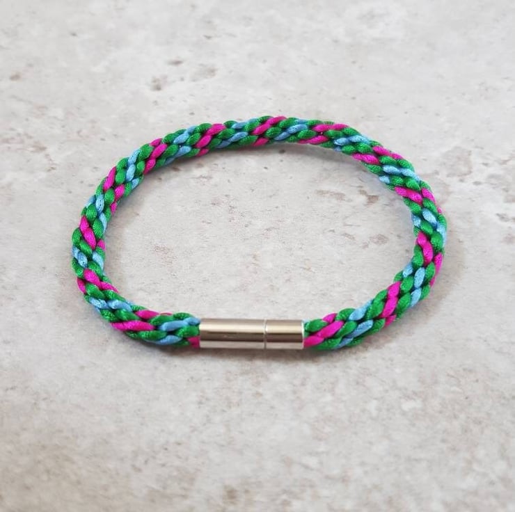 This listing is for ONE pink, green and blue bracelet with bayonet clasp.