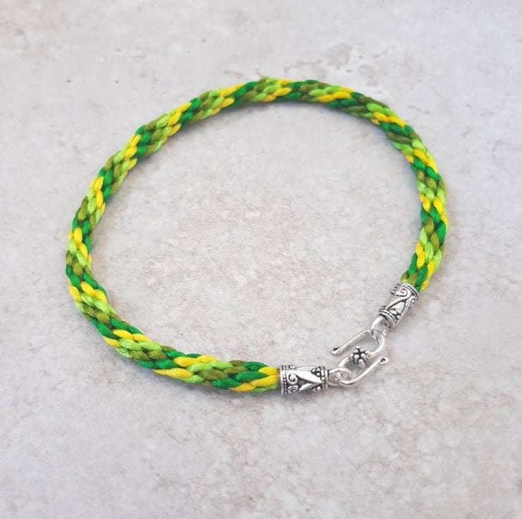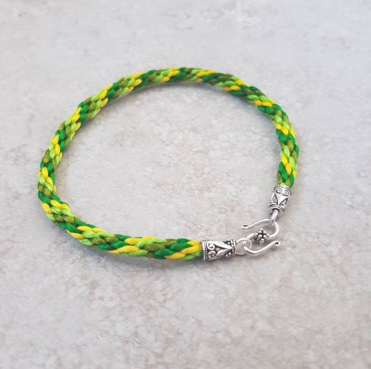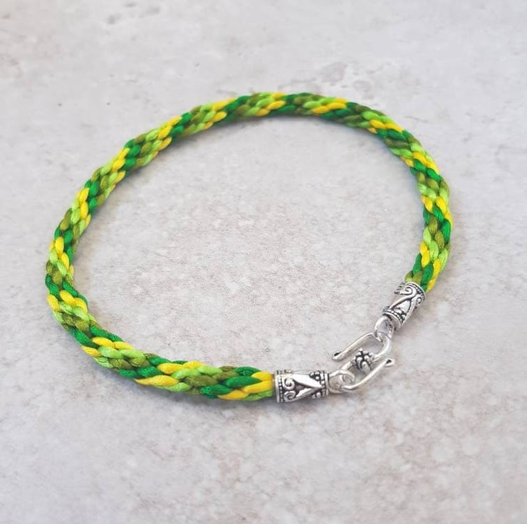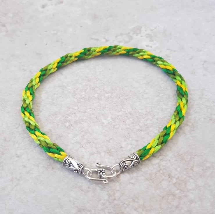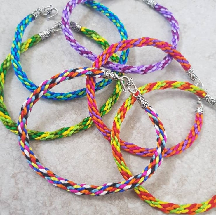 They are hand woven with 8 strands of silky satin cord and finished with a pretty Tibetan silver 'S' hook clasp.