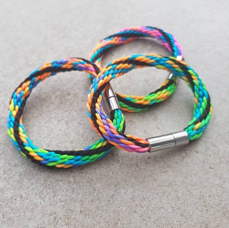 All braids are handmade and whilst all will be neon rainbow, colours and patterns will vary to retain individuality.