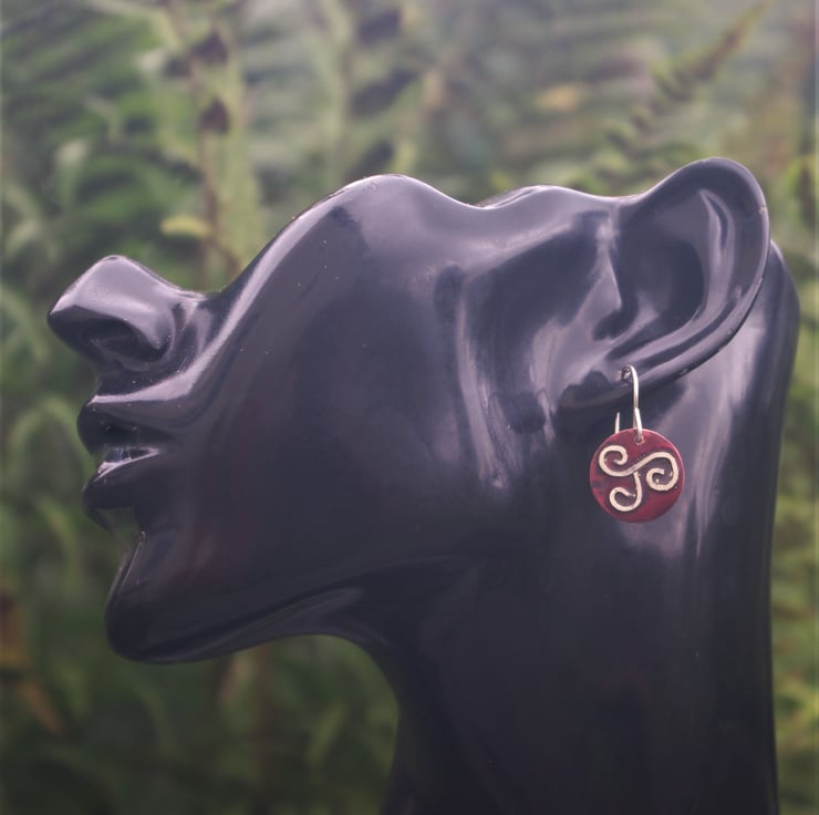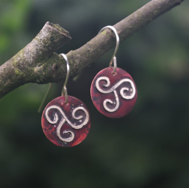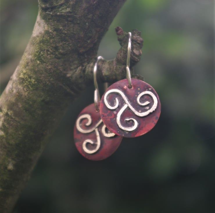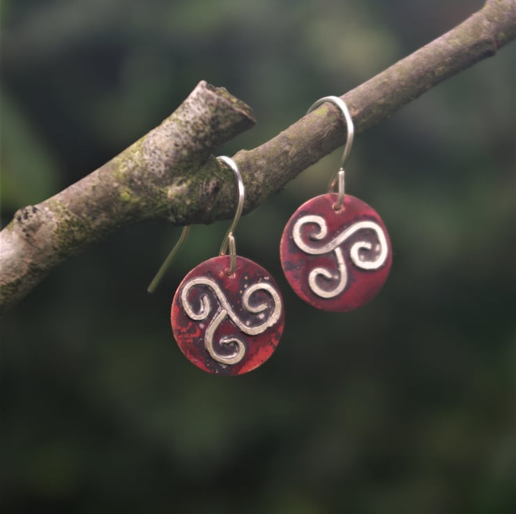 The Celtic triple spiral is an important Celtic symbol and has different interpretations; it is a symbol of continuous movement and often used to signify female empowerment. The ear hooks are handmade using sterling silver .Total dangle is 27mm/ just over an inch from top of ear hook.