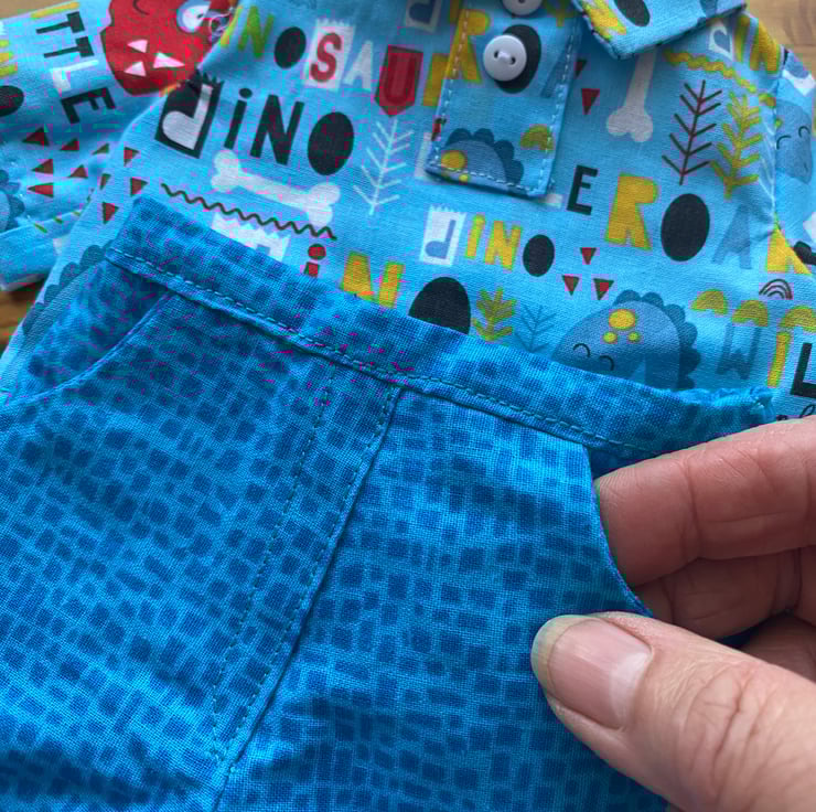 The shorts were different to make as they have side pockets. It’s good to made different things. Love how well the fabrics go together. Granddaughters had boy dolls for Christmas so I started making them some clothes.