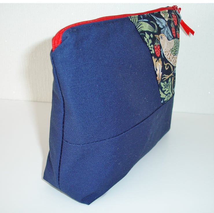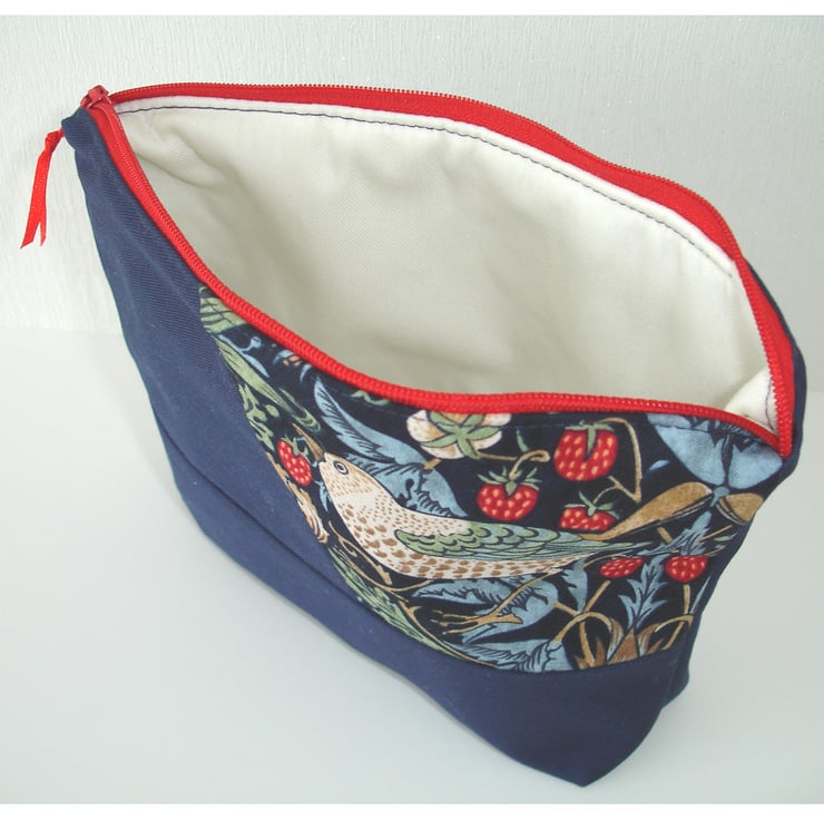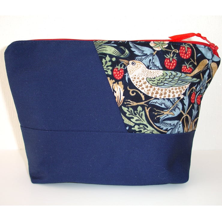 Strawberry Thief Cosmetics Bag Travel Purse William Morris Bird Blue