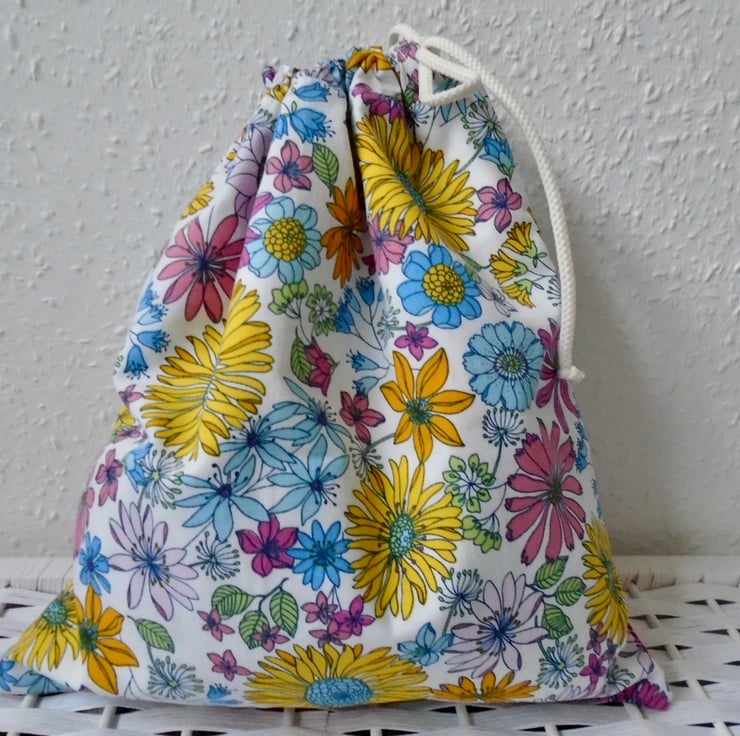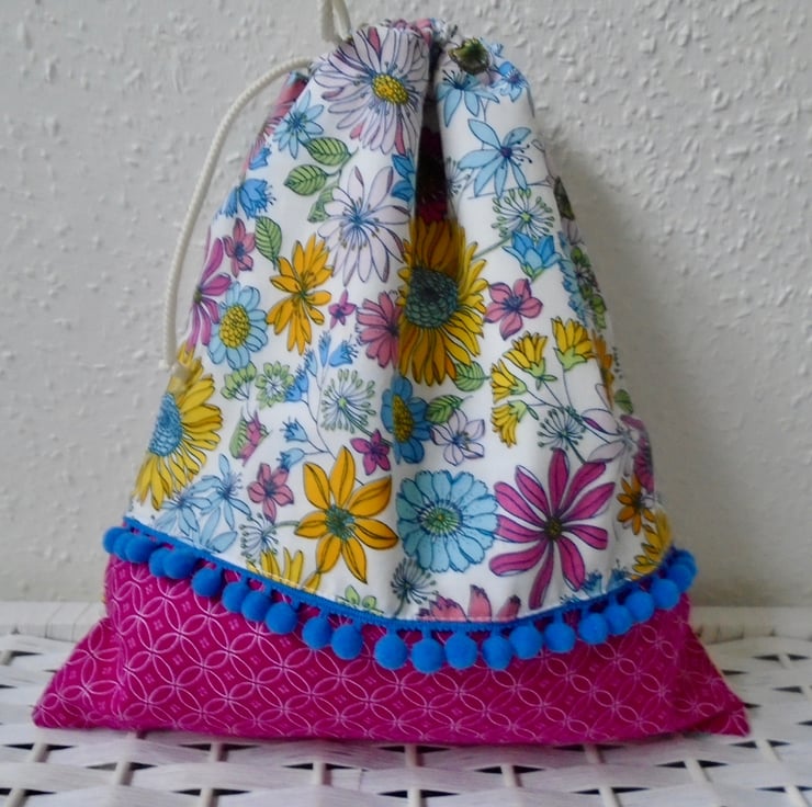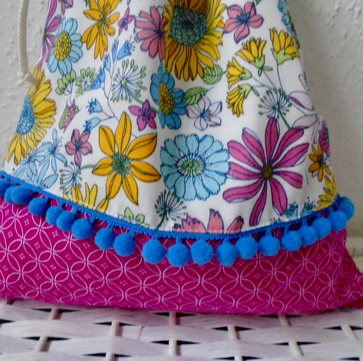 A pretty drawstring bag , all ready to be filled with bits & bobs / small craft projects / gift bag /etc.