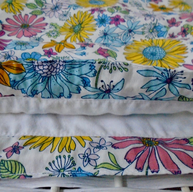 Fully lined in a small floral cotton fabric .