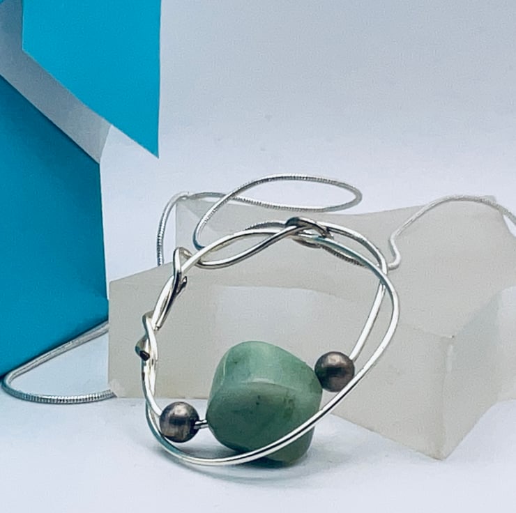 Twisted wire suspends these gemstone beads for a minimalist result. So if the lady who is also a minimalist and loves green, look no furtgpher you have found the perfect gift!