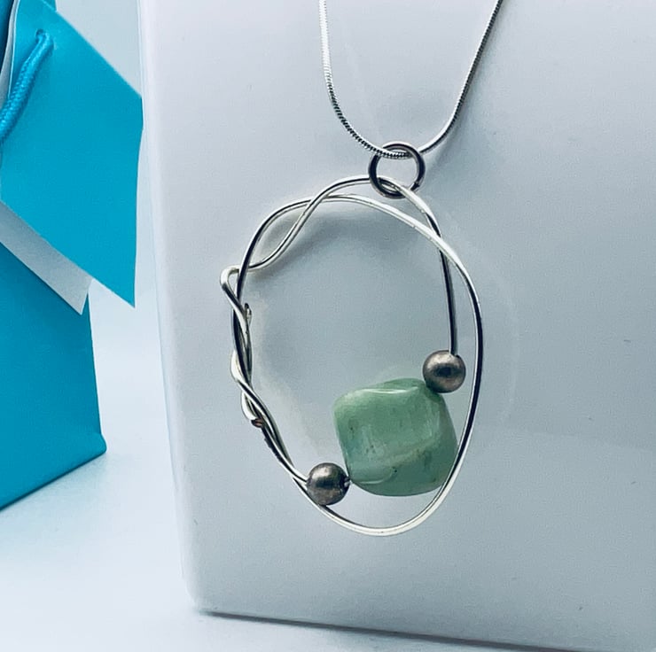 Twisted wire suspends these gemstone beads for a minimalist result. So if the lady who is also a minimalist and loves green, look no furtgpher you have found the perfect gift!