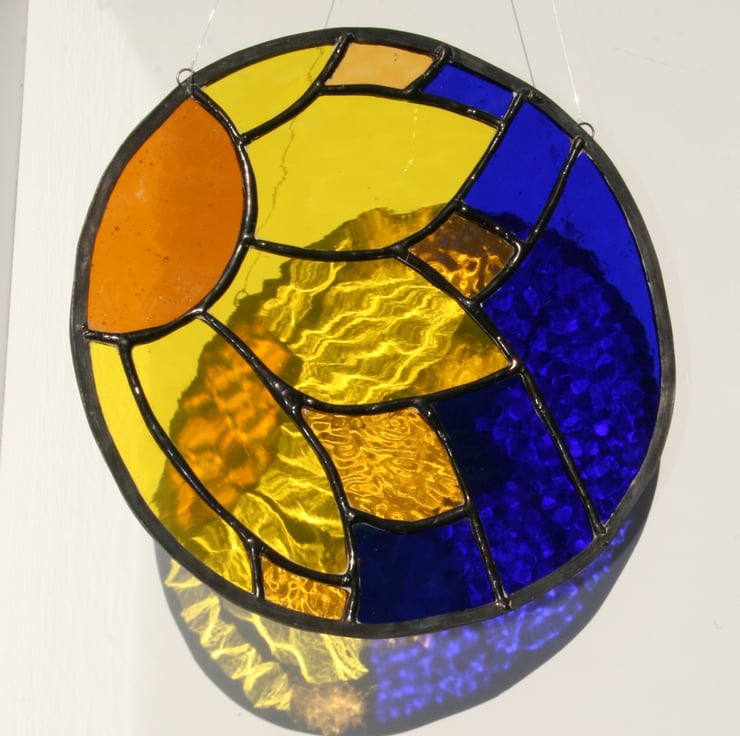 The colours of this suncatcher are just stunning. The yellow water glass especially creates an amazing reflection on those sunny days! It would make an excellent gift or just a treat for yourself, either way it creates that feel good feeling.