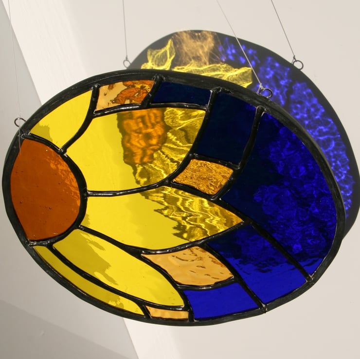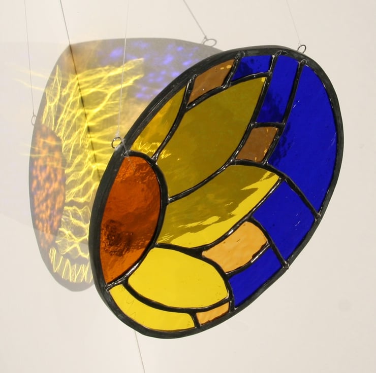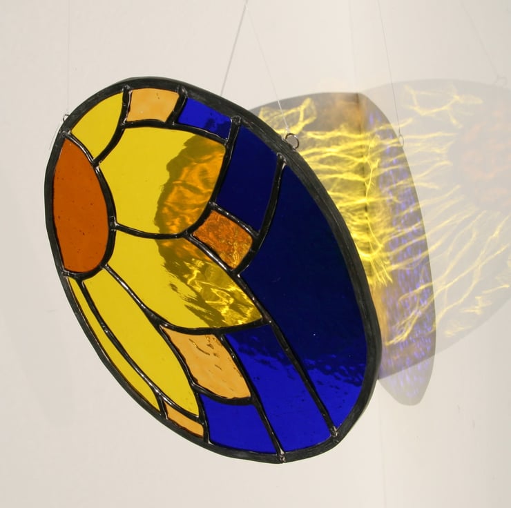 Created in the Tiffany glass style, the suncatcher goes through various stages create the finished product. All processes are by hand including the cutting of glass and soldering to join the pieces.
