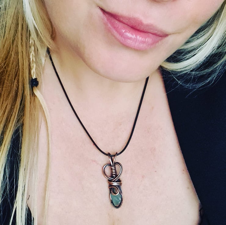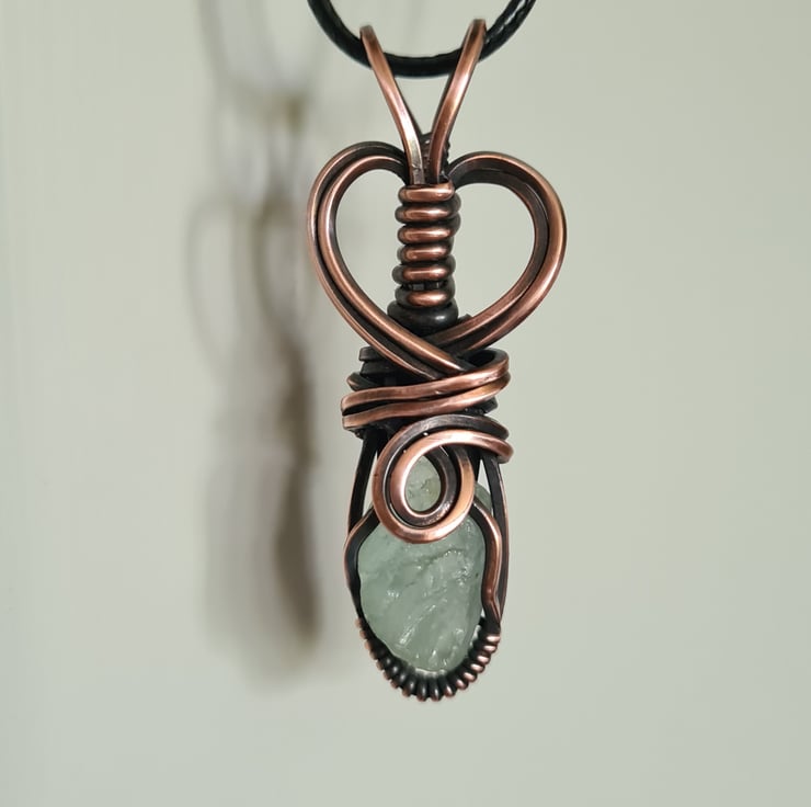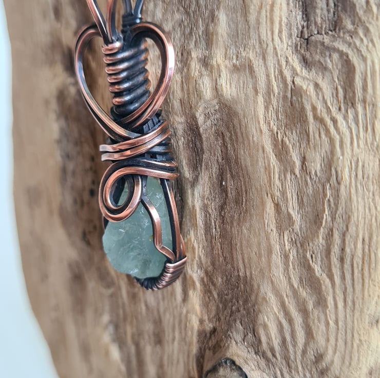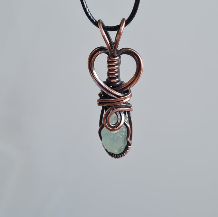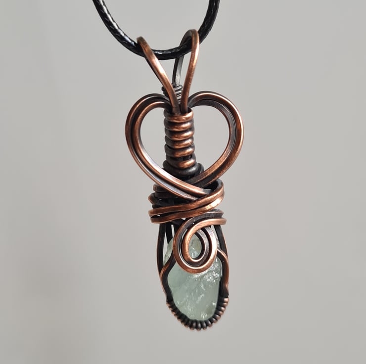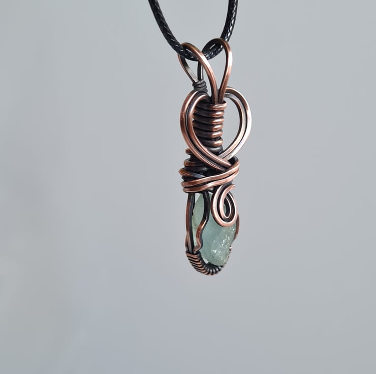 I have handcrafted this necklace using a top quality rough cut Natural Raw Aquamarine crystal which i have handwrapped in copper, and then antiqued and polished for the final effect. A really cute little pendant and very unique.