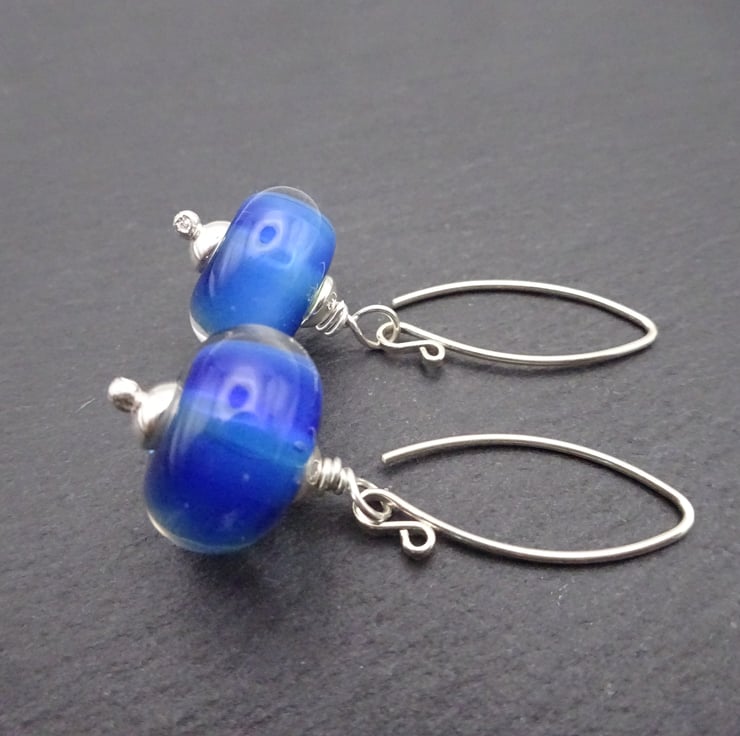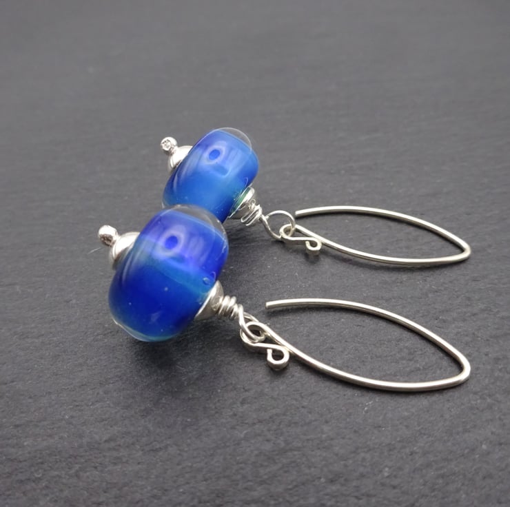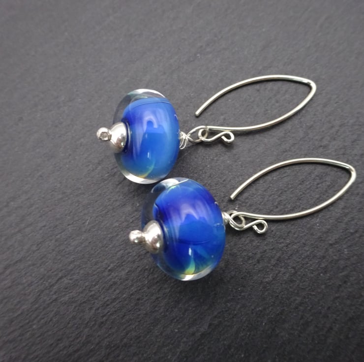 The lampwork glass beads have been handmade by me using silver blue glass.