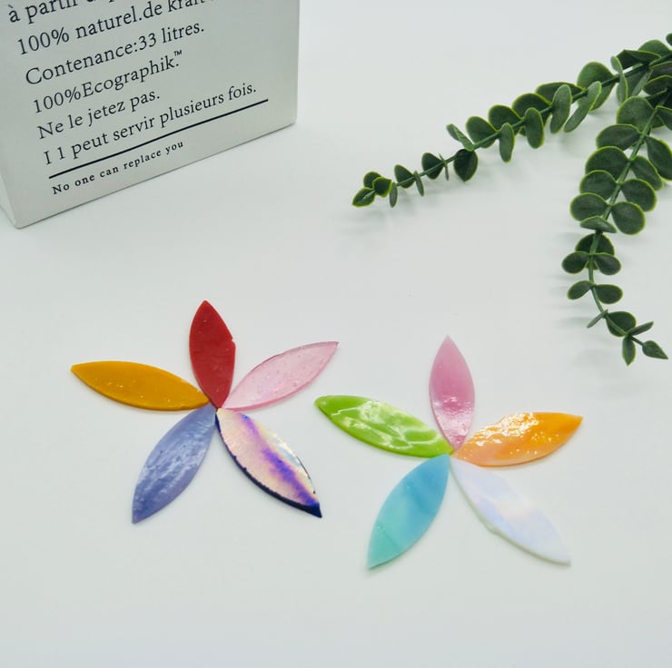 Each leaf tile has been crafted with love and attention to detail, making them ideal for both beginners and seasoned artists. Create enchanting designs that reflect the beauty of nature with our Leaf-Shaped Stained Glass Mosaic Tiles. Order your pack today and experience the magic of stained glass artistry!