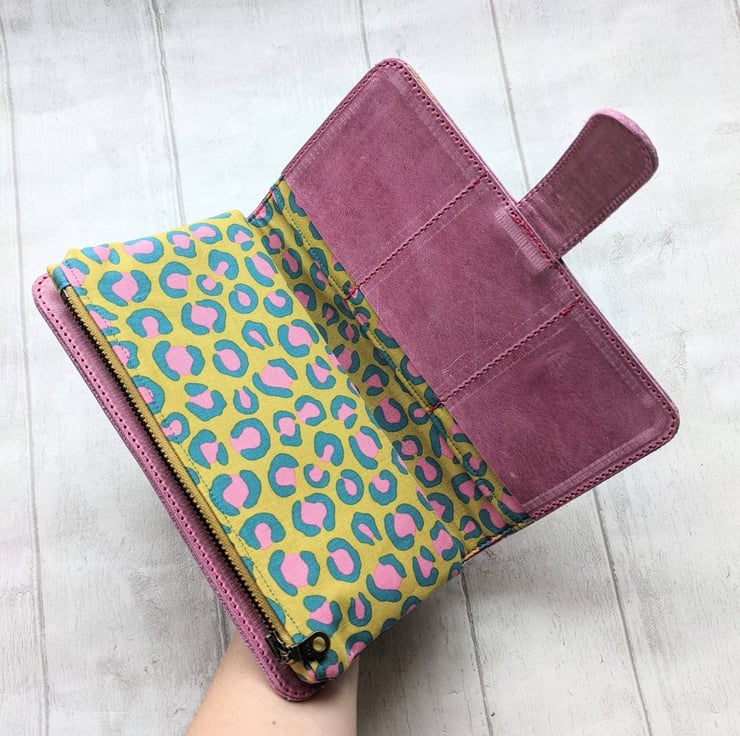 Choose any combination of leather colour and lining fabric. Simply browse my store for ideas, or message me to discuss options. I have hundreds of fabrics; florals, novelty etc, so I can surely find something to suit your taste.