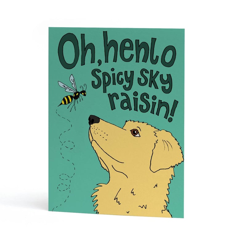 You might know them as bees or wasps, but doggo here knows these stinging insects as "spicy sky raisins" - get this card for the owner of a spicy sky-raisin-eating canine, and watch them have a good ol' chuckle!