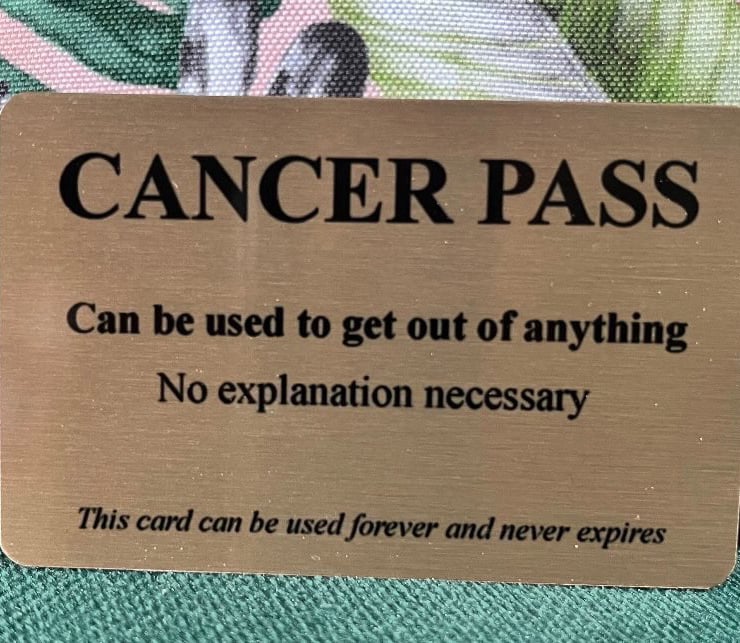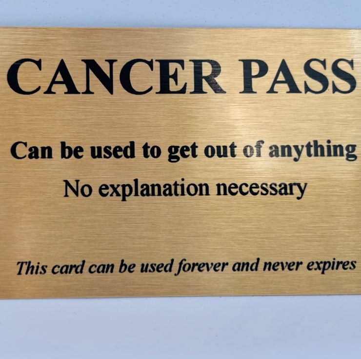 This ‘Cancer Pass’ is the perfect tongue in cheek gift to pop in the post giving them the gift of physically “pulling the cancer card”.