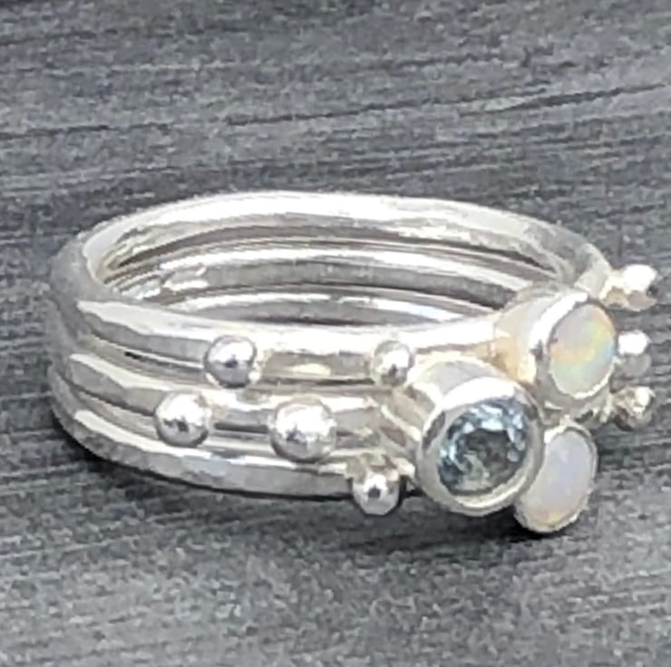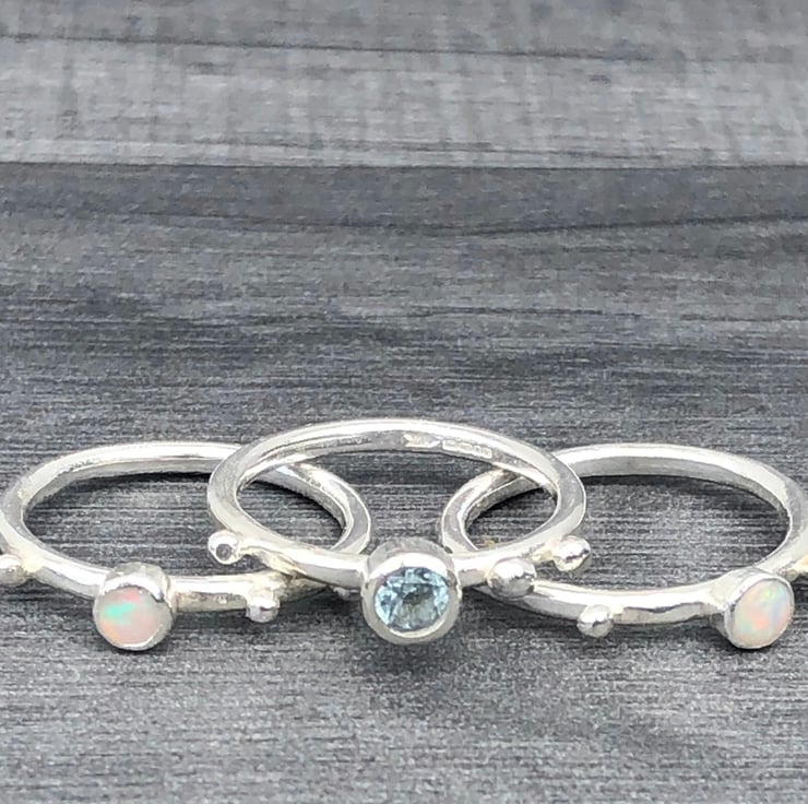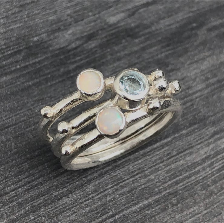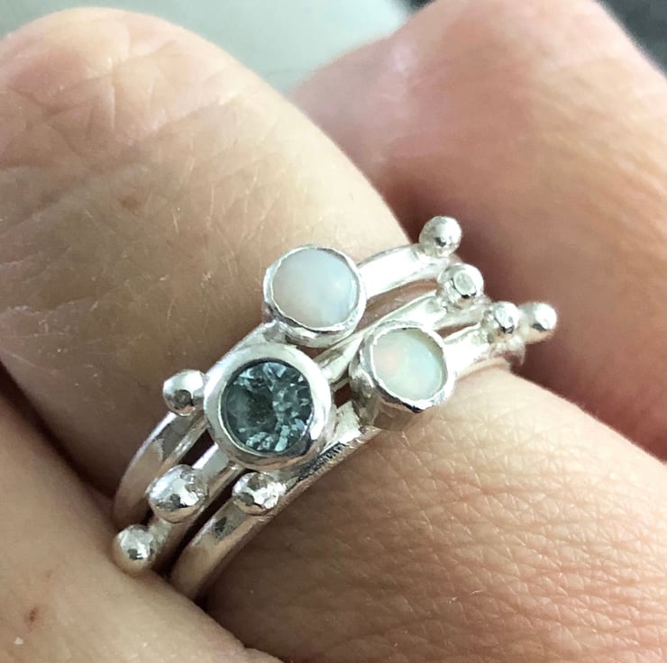 Aquamarine Stack Ring, rain, stack ring, Opal stack ring, raindrops stack ring,