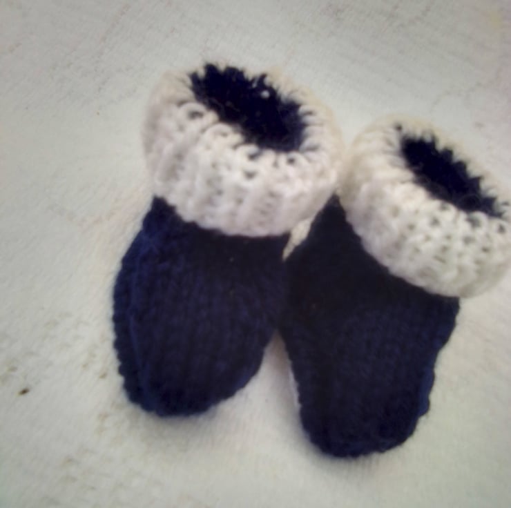 Baby's Navy Romper and Booties Set, Baby Shower Gift, Custom Make, Baby Outfit, Baby Layette, Hand Knitted Baby Set, Baby Romper, Baby Shoes, Baby Cardigan, New Baby Gift