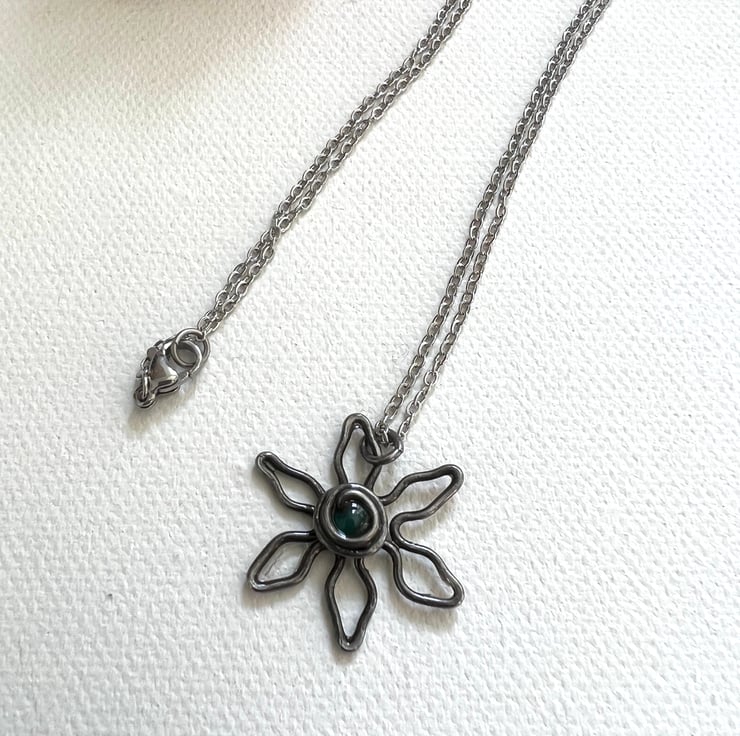 I like to make jewellery from natural organic metal wires such as copper, bronze, steel, and iron to name but a few. This style pendant makes a cute floral themed jewellery accessory.
