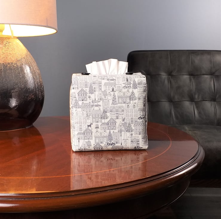 Printed cotton tissue box cover handmade in Glasgow, Scotland