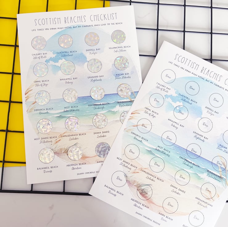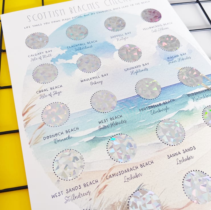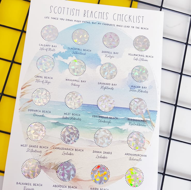 A bold print featuring 20 favourite Scottish beaches, simply scratch off the shiny bit when you've dvisited each one, makes a great gift for an outdoor lover!