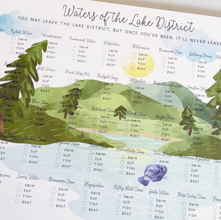A bold print featuring our favourite Lake District waters, simply tick off the shiny bit when you've visited them all, makes a great gift for an outdoor lover!