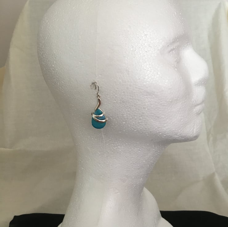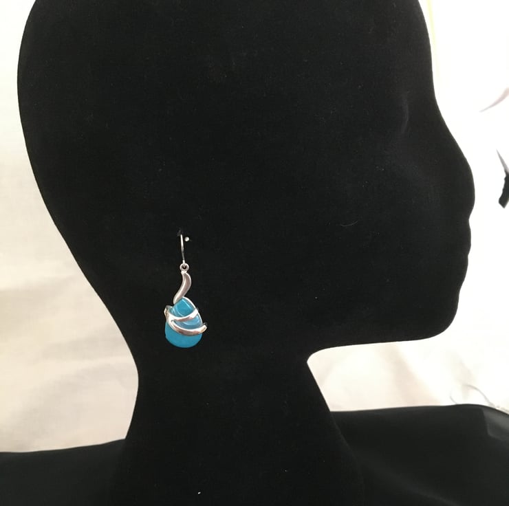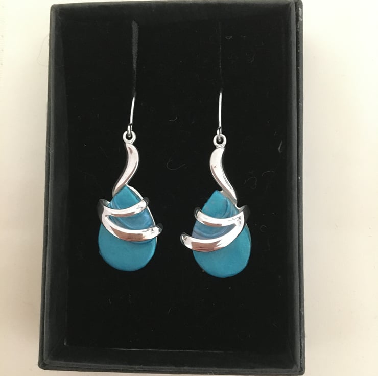 Handcrafted Drop Azure Centred Earrings in a quality silver plated setting