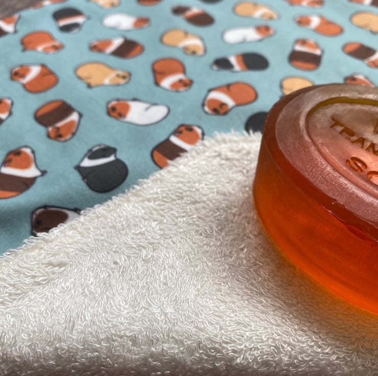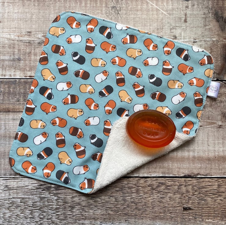 A handmade re-useable washable organic Bamboo towelling and 100% cotton fabric (not organic) wash cloth/wipe.