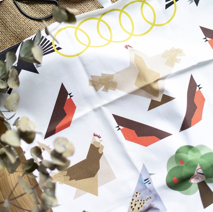 Christmas Tea Towel - Days of Christmas - 5 Gold Rings, 4 Calling Birds, 3 Frenc