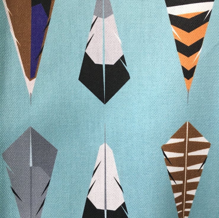 This Tea Towel features a geometric feather design. This design was created after reading ‘Wuthering Heights’ Monica was struck by the scene where Cathy is entering her ‘madness’ and extracting feathers from her pillow: