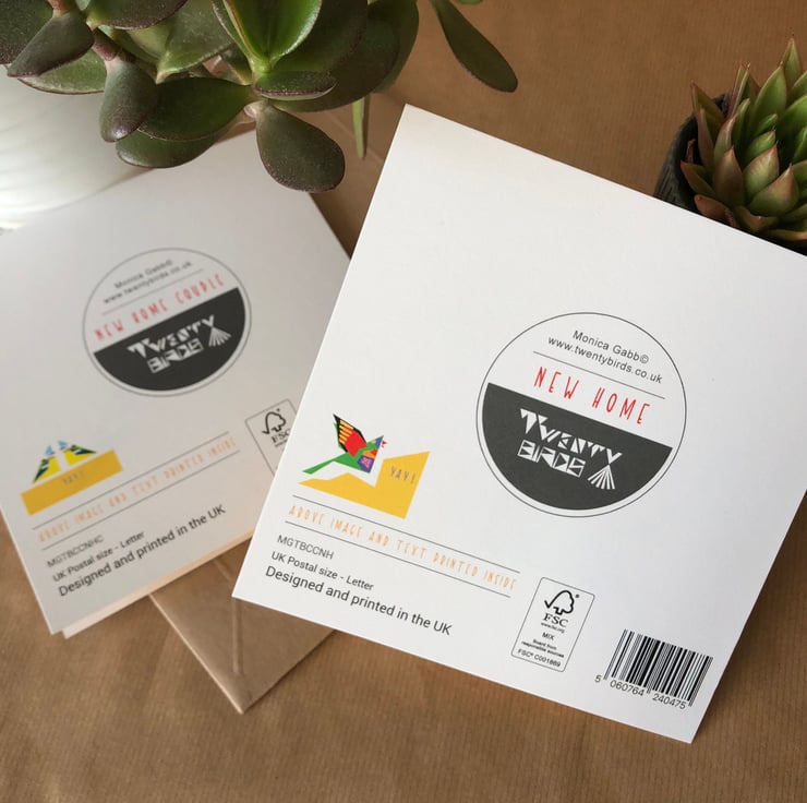 15 x15 cm 300gsm recycled card with brown envelope. A cut out aperture reveals new chick. Inside includes an image and the text Congratulations