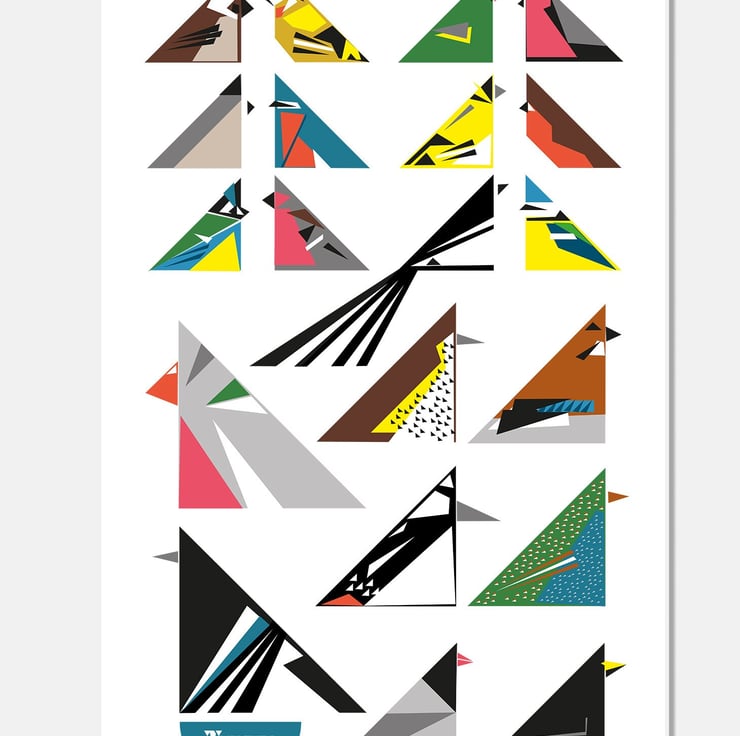 All birds are geometric designs and abstracted but the colours stay true to the birds and they are recognisable by bird lovers.