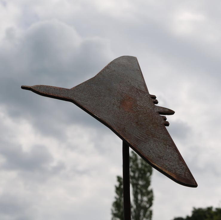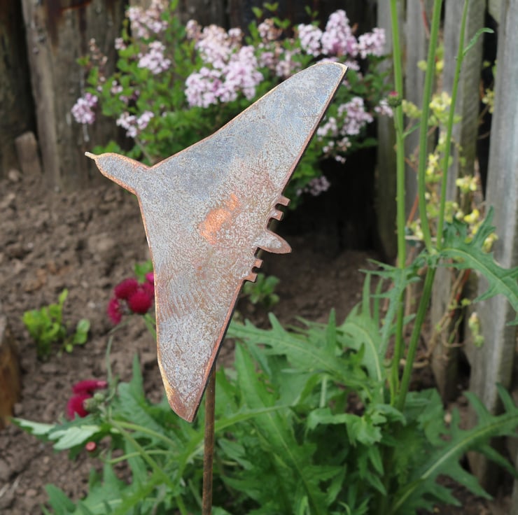 Add a new dimension and interest to your garden with our attractive rusty Vulcan bomber garden decoration. The mild steel is designed to weather naturally out in the elements, the beautiful rusty colours and textures will bring a truly organic feel to your planters, flower beds and borders. This item is hand finished, so may differ slightly from the photograph