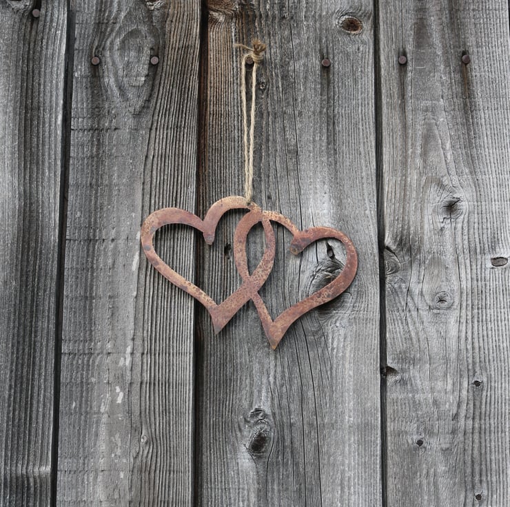 Rusty metal entwined hearts gift, hanging rusty hearts, 11th anniversary