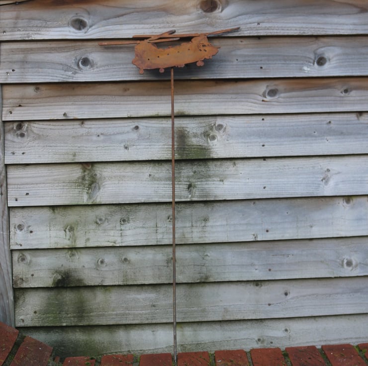 Add a new dimension and all year round interest to your garden with our attractive rusty Chinook garden decoration. The mild steel is designed to weather naturally out in the elements, the beautiful rusty colours and textures will bring a truly organic feel to your planters, flower beds and borders. Other designs available. Also see our plane wall panels and key holders. This piece is hand finished, so may differ slightly from the photograph.