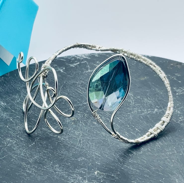 The twist within the bracelet enables it to b e squeezed close to fit on the wrist. The crystal is made by Preciosa, very similar to Swarovski but a family concern!
