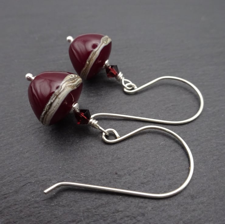 The beads have been handmade by me using dark red glass.
