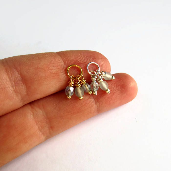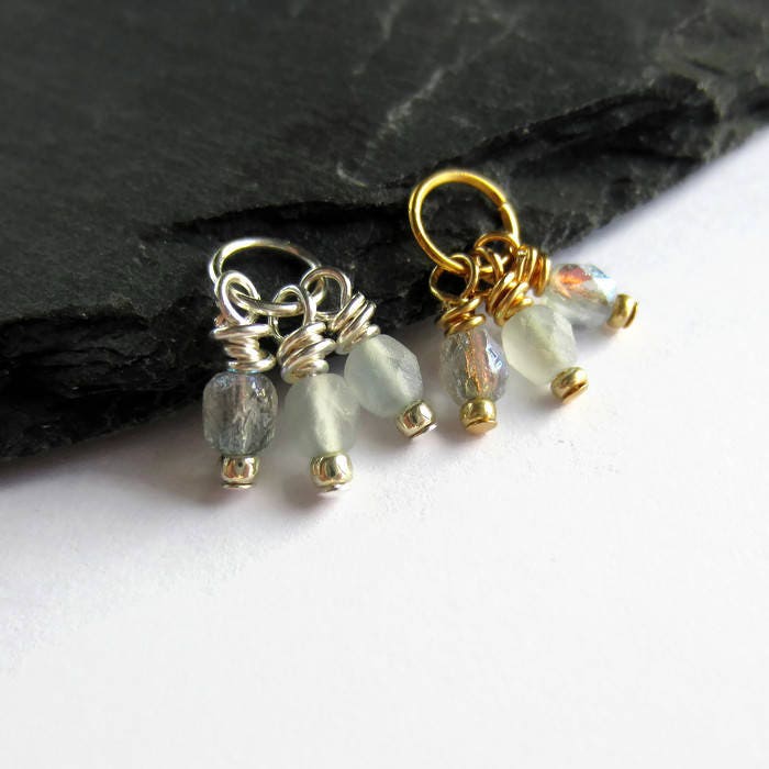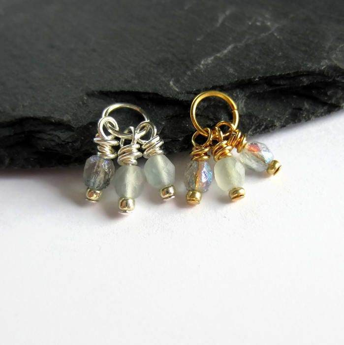 These dainty Czech glass charms are handcrafted by wire wrapping 3 Czech glass fire polished crystal beads which are then attached to a single 6mm open jump ring to create a pretty triple cluster charm or mini pendant, all ready for you to add to your own jewellery or your jewellery creations. Add one to a necklace or bracelet, or buy two and make a pair of pretty drop earrings! They also look fantastic as little hoop earring charms.