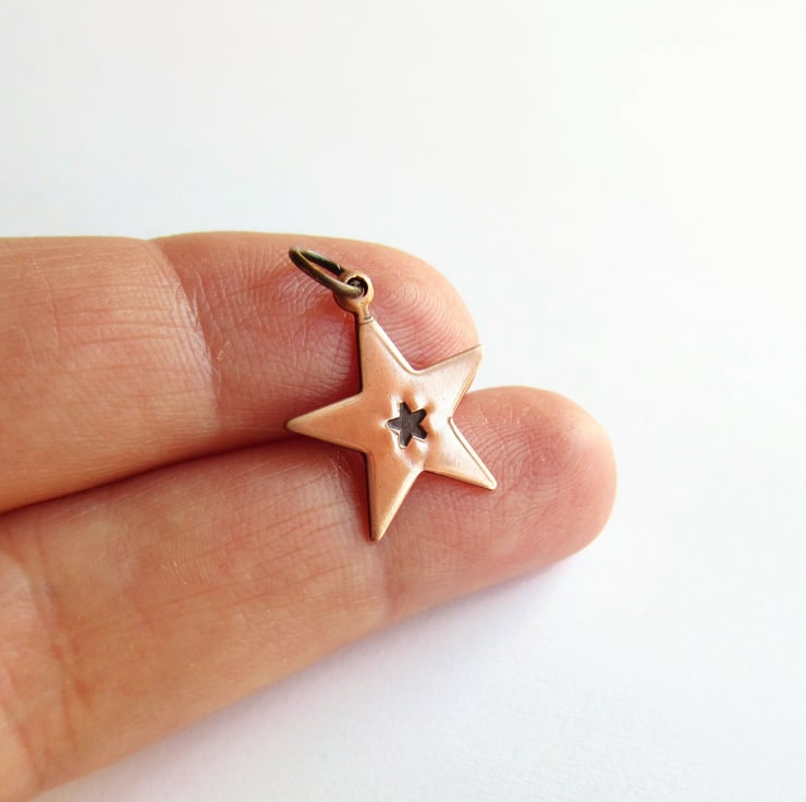 - Copper star charm measures 17mm wide (just under 34 inch) and 19mm long (excluding jump ring).