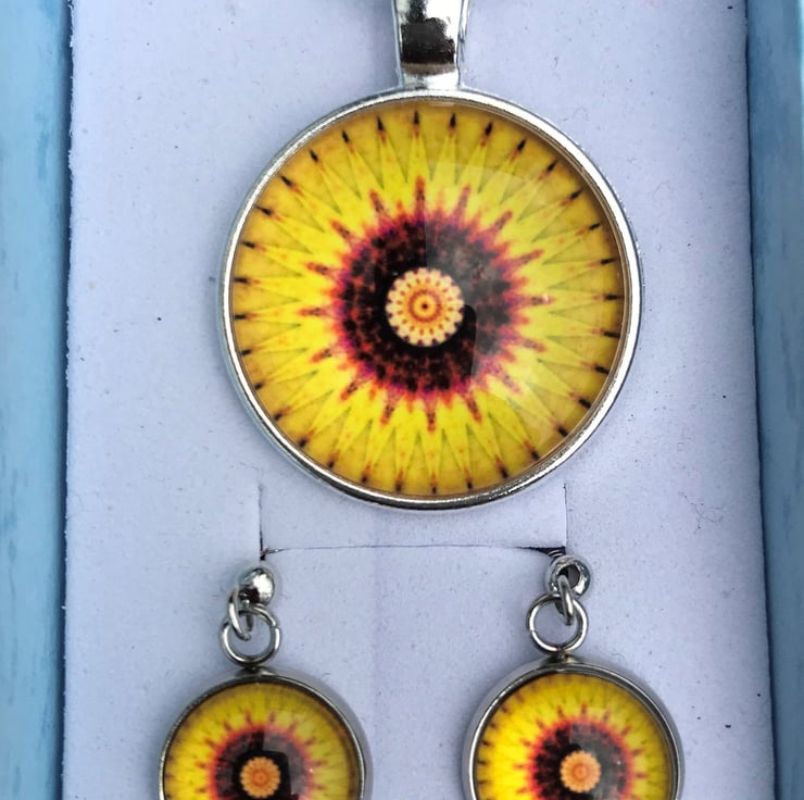 Glass Mosaic Effect Pendant Necklace and Drop Earrings Set - Sunrise