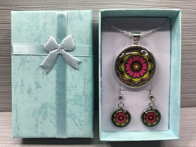 Beautiful glass pendant necklace and matching earrings.