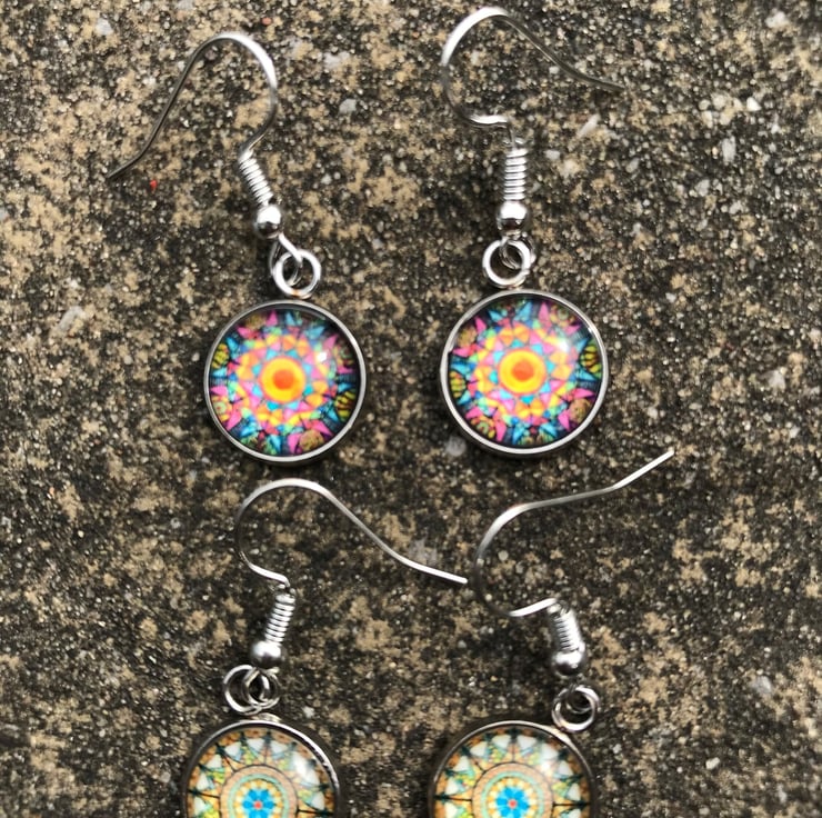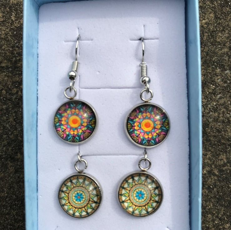 Glass Mosaic Effect Drop Earrings - 2 pairs - Mixed