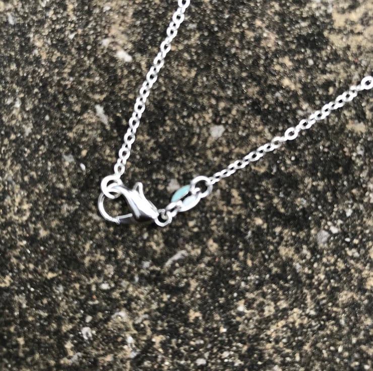 The necklace chain is silver-plated, dainty and delicate with an easy lobster clasp. The chain is 18 inches in length, 1.2mm in thickness, perfect size for wearing.